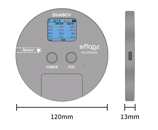 ?SinABCV智能款UV能量計(jì)是一款為電子元件行業(yè)、噴涂行業(yè)、UV鍍膜行業(yè)、印刷行業(yè)等行業(yè)提供精準(zhǔn)、可靠能量數(shù)據(jù)的高精度記錄儀,可用于測(cè)量和記錄UV能量(mJ/cm2)和UV輻射強(qiáng)度(mW/cm2),內(nèi)置高靈敏度紫外傳感器和高速數(shù)據(jù)采集模塊,能夠?qū)崟r(shí)監(jiān)測(cè)并完整記錄紫外線照射過(guò)程中的關(guān)鍵參數(shù)。